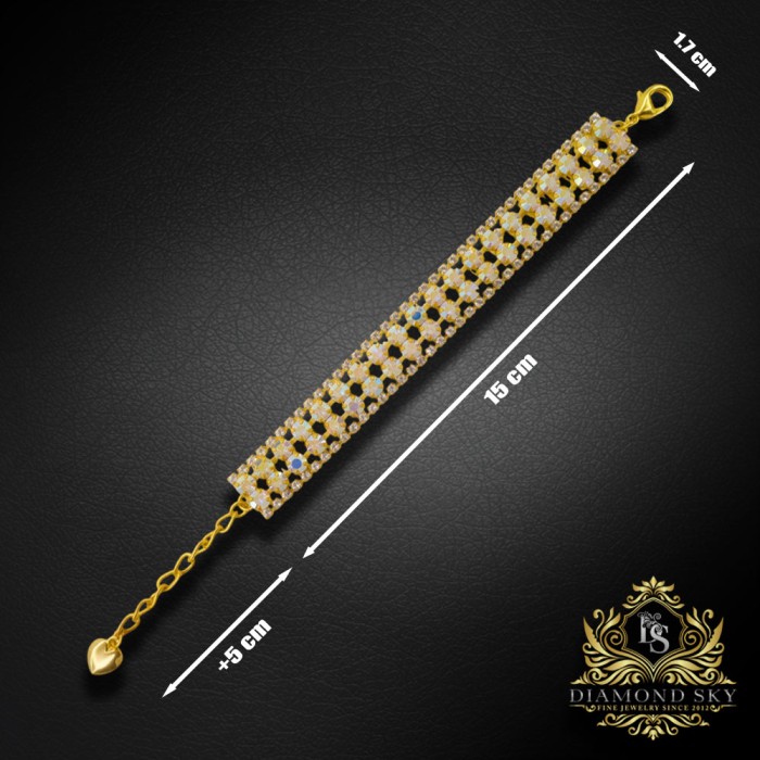 Ekskluzīvā Diamond Sky kolekcijas aproce izstaro maigumu un mūžīgu šarmu. Aurora Borealis kristāli no Preciosa™ atstaro maigu pasteļgaismu, kas atgādina rītausmas pieskārienu. 18k zelta pārklājuma siltā nokrāsa izceļ katra akmens sapņaino toni, radot ideālu līdzsvaru starp eleganci un mieru — ekskluzīvs juvelierizstrādājums, kas iemieso sievišķīgu smalkumu.