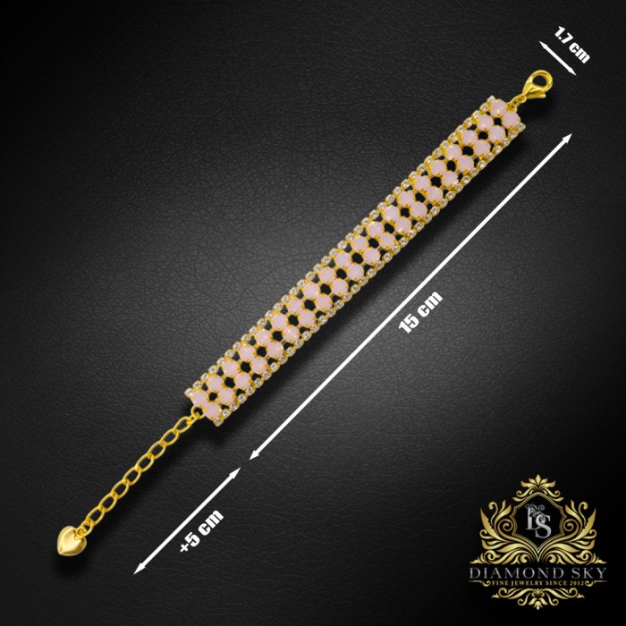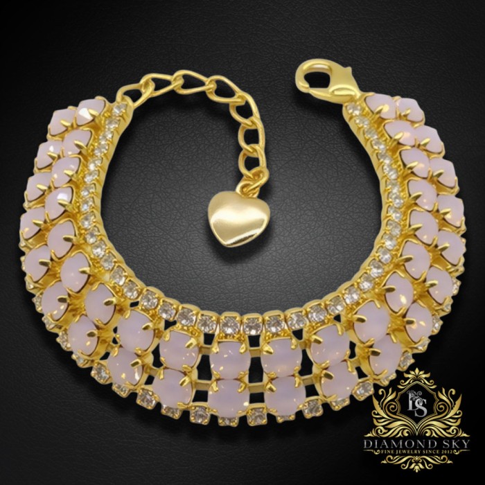 Ekskluzīvā Diamond Sky kolekcijas aproce izstaro maigumu un mūžīgu šarmu. Rose Opal kristāli no Preciosa™ atstaro maigu pasteļgaismu, kas atgādina rītausmas pieskārienu. 18k zelta pārklājuma siltā nokrāsa izceļ katra akmens sapņaino toni, radot ideālu līdzsvaru starp eleganci un mieru — ekskluzīvs juvelierizstrādājums, kas iemieso sievišķīgu smalkumu.