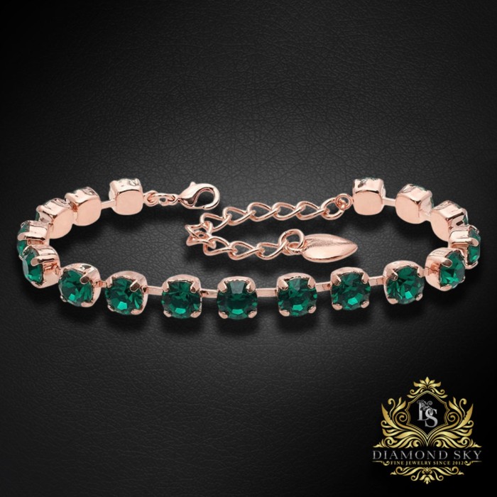 Eleganta aproce ar Swarovski™ kristāliem bagātīgā Emerald tonī. Klasiskais 8 mm akmeņu izkārtojums piešķir rotai izteiksmīgu mirdzumu un laika pārbaudītu eleganci. Pagarinājuma ķēdīte nodrošina ērtu izmēra regulēšanu.