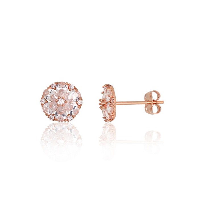 Atslēgvārdi: zelta auskari, sarkanais zelts 585, cirkoni, halo dizains, klasiskie auskari