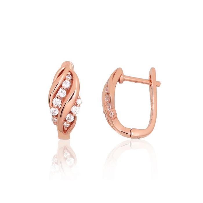 Eleganti sudraba auskari ar viļņotu dizainu un mirdzošiem cirkoniem. Sarkanā zelta pārklājums piešķir siltumu un izsmalcinātu spīdumu, izceļot katru līniju. Ideāli piemēroti ikdienai un svētkiem, akcentējot sievišķīgu šarmu.