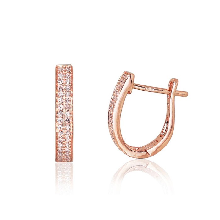 Eleganti auskari no 585. proves sarkanā zelta ar briljantiem kopējā svarā 0.215 ct. Izstieptā forma un blīvā akmentiņu rinda rada izsmalcinātu gaismas efektu, piešķirot rotai mūsdienīgu un greznu raksturu. “Džoanna IX” ir izteiksmīgs, bet līdzsvarots dizains.
