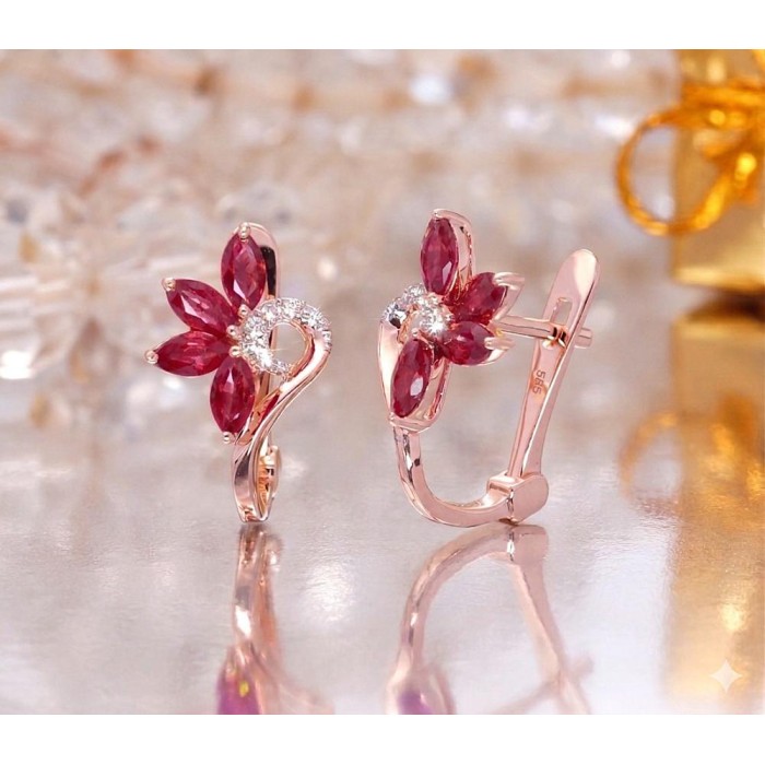 Zelta auskari ar briljantiem "Kristalīts IV" no 585 proves sarkanā zelta