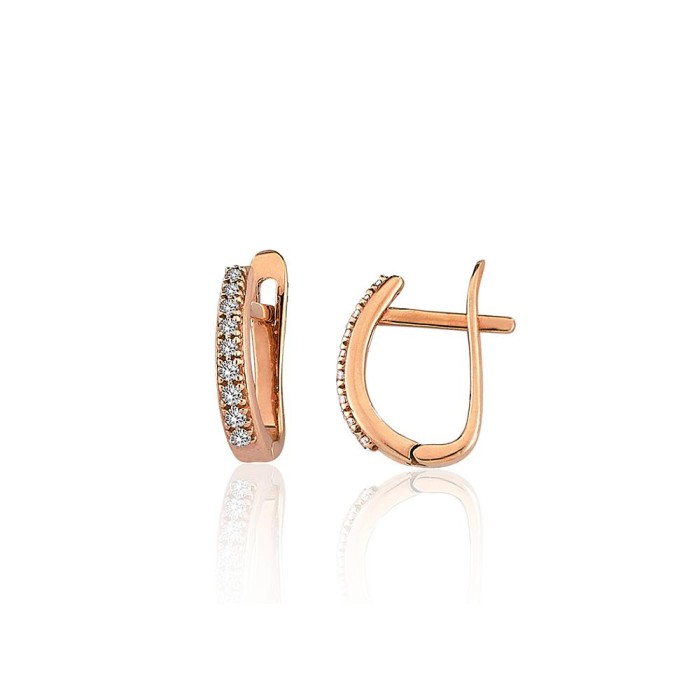 Eleganti auskari ar izliektu formu un smalku cirkonu rindu, kas skaisti atstaro gaismu. Sarkanā zelta tonis piešķir rotai siltu un izsmalcinātu mirdzumu, padarot to par klasisku izvēli ikdienai un svētkiem.