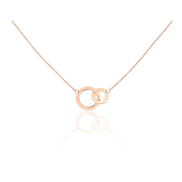 Izsmalcināta kaklarota no 585. proves sarkanā zelta ar bezgalības iedvesmotu dubultā apļa dizainu. Gludā, pulētā virsma simbolizē mūžību un saikni.