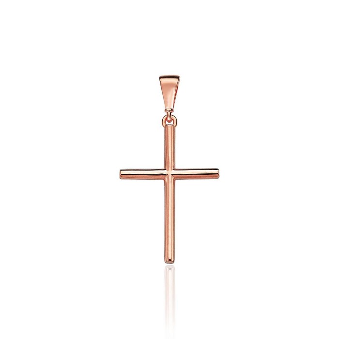 Elegants, pagarinātas formas krusta kulons no 585. proves sarkanā zelta. Tīras līnijas un pulēta virsma piešķir klasisku izskatu.